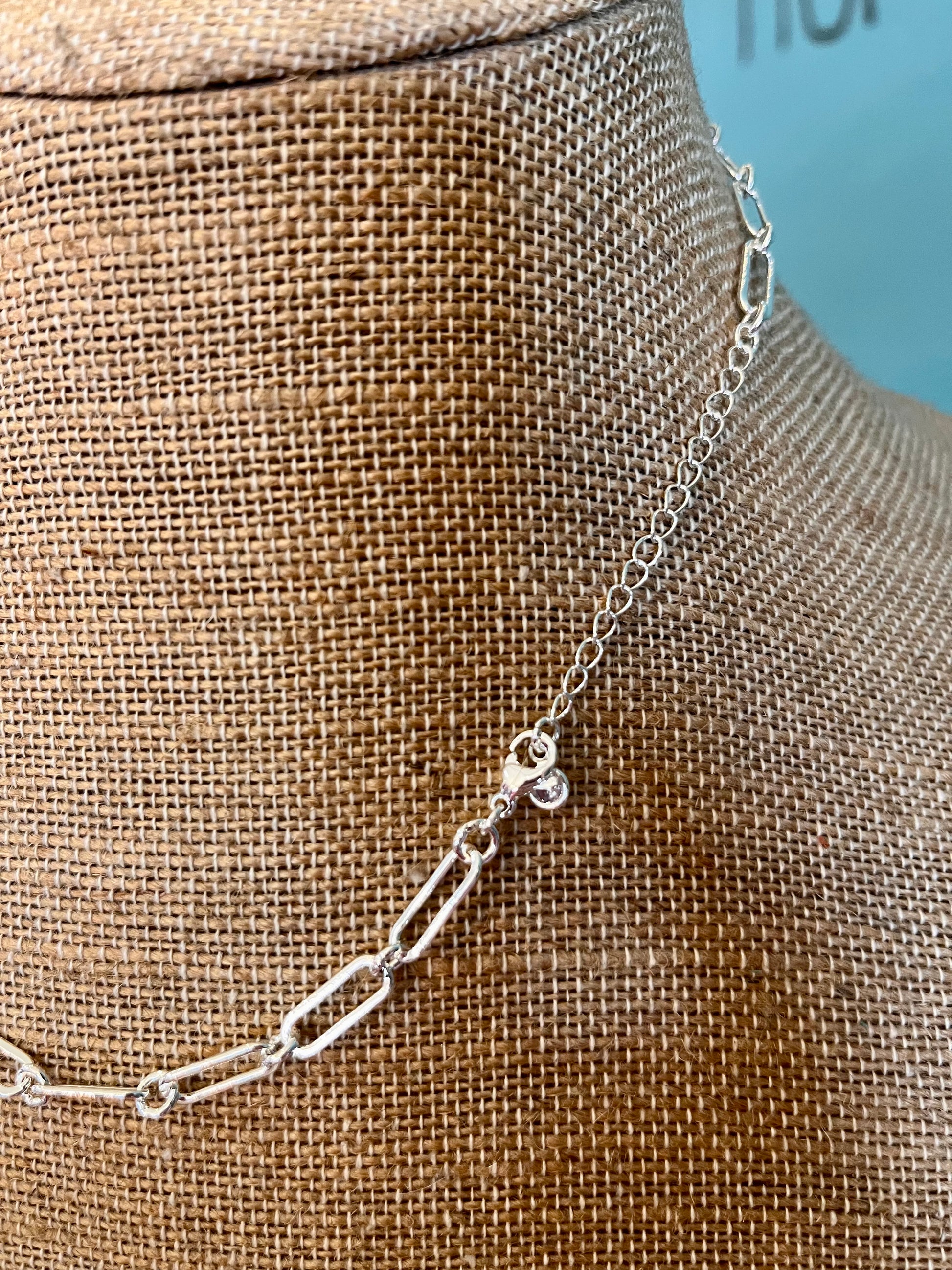 Cross Necklace with Paperclip Chain, chain measures 8.5 “ and is adjustable, cross measures 1”, available in Gold and Silver