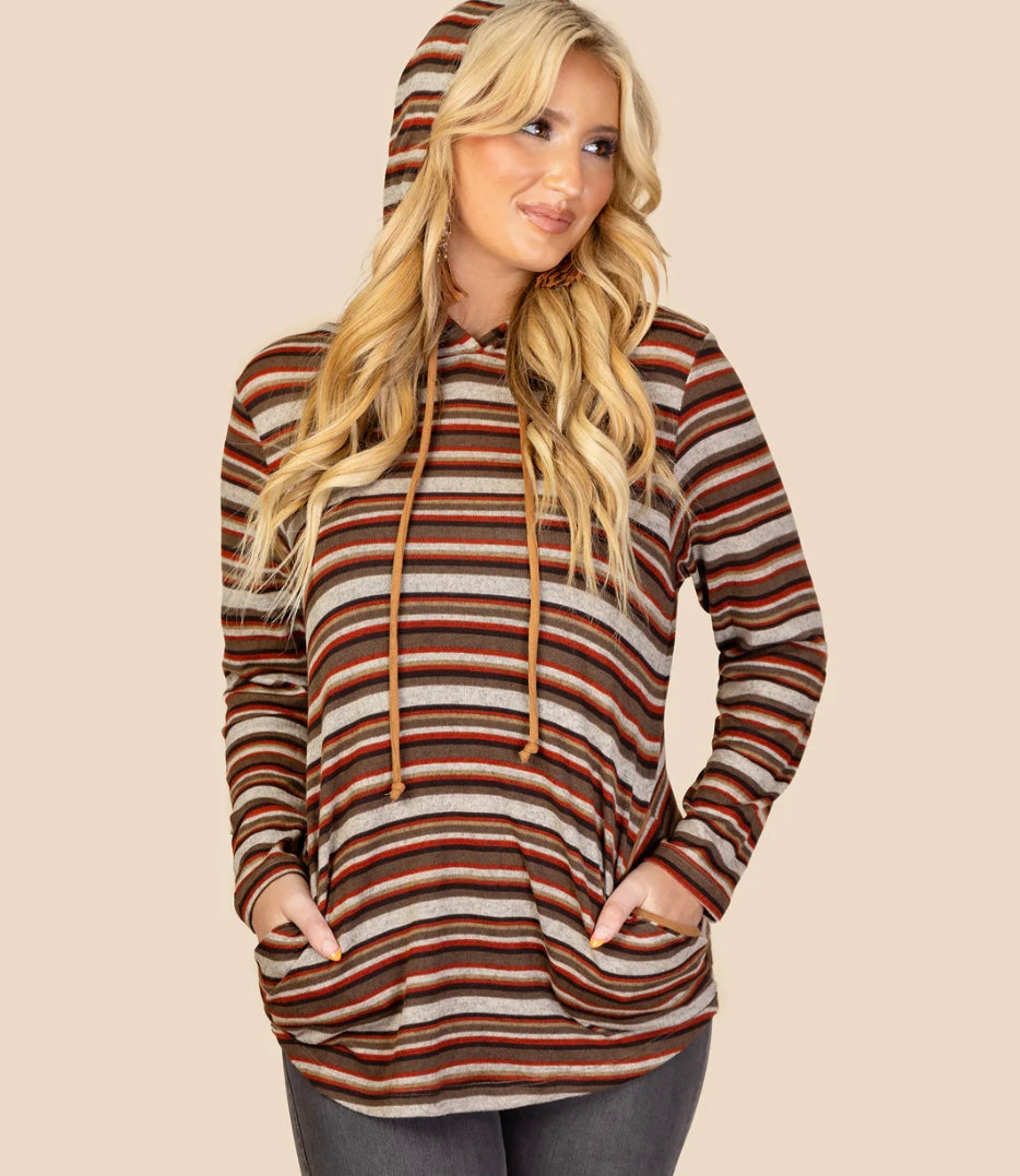 Striped Hoodie Multi Color with Elbow Patches and Pockets